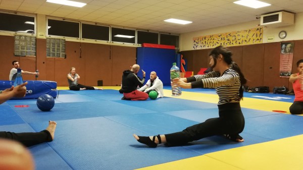 Aujourd'hui pour le dernier cours de remise forme de l'année nous avons eula visite de Thierry handicapé suite à la maladie.Ce qui a permis de faire une pratique partagée avec les valides.Merci et bravo pour ce moment de vie.